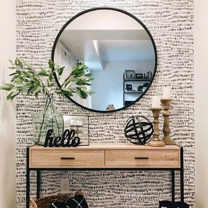 LARGE, BLACK BORDERED ROUND MIRROR: Hub is a 21-inch diameter mirror that looks great in any room