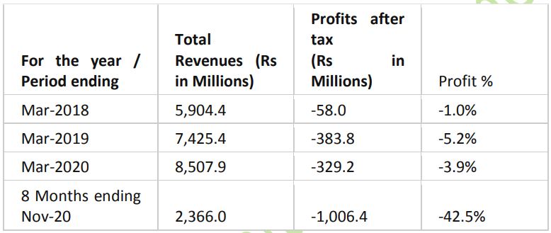 - Company has been incurring losses in the last 3 years and 8 months.